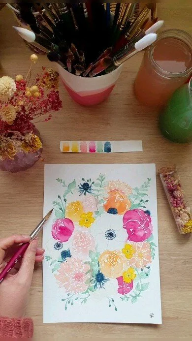 Subjuguée par l’aquarelle moderne depuis 2018 et ces multiples possibilités de création, je vous partage mes astuces et mes peintures avant qu’elles ne se transforment en motif. Totalement amoureuse de la fusion des pigments et de la magie de l’aquarelle, j’espère vous donner envie de mettre des couleurs dans votre vie en vous partageant mes méthodes d’apprentissages et quelques tutoriels à l’aquarelle.