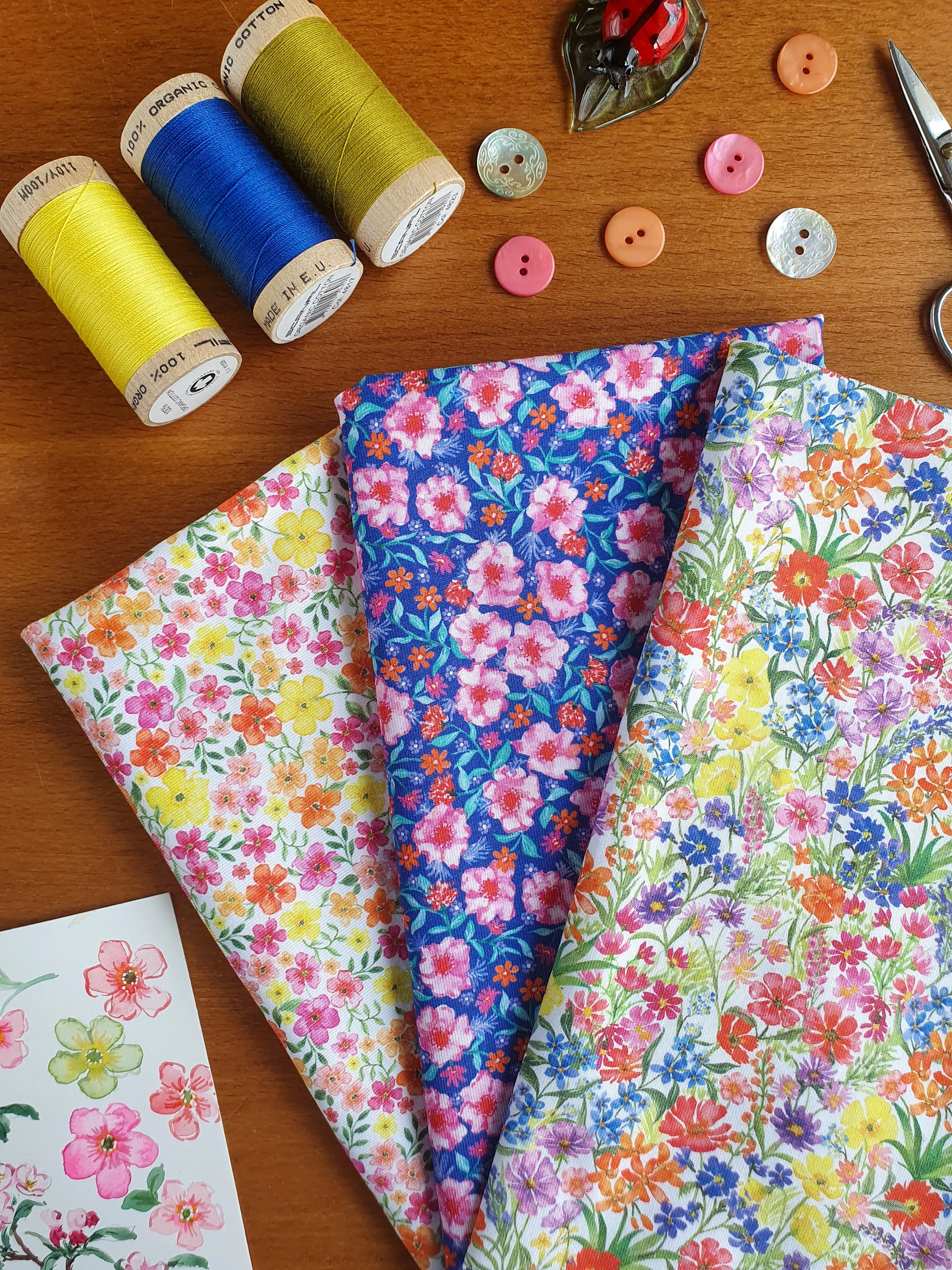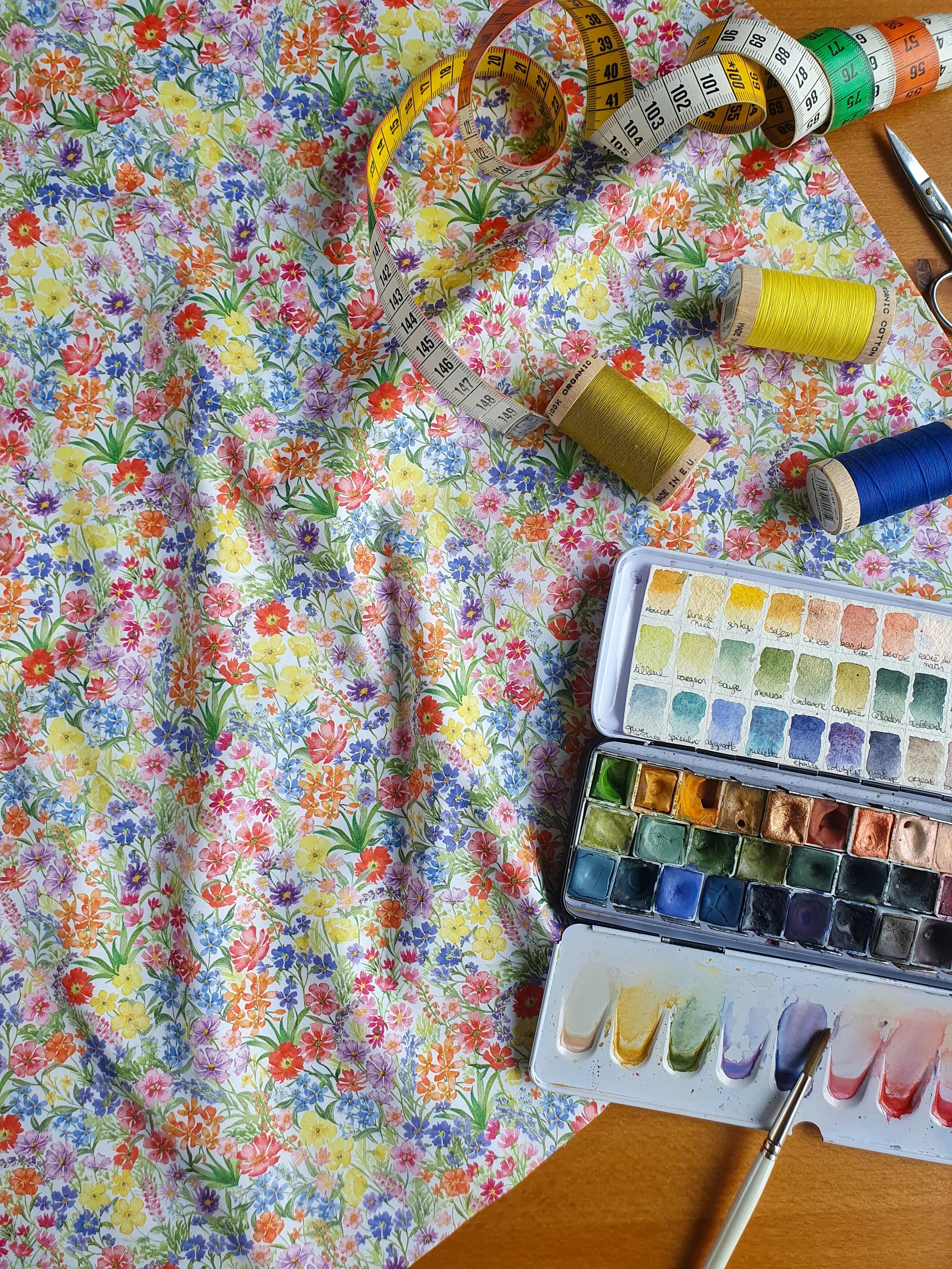 Ils ne cherchent pas la perfection…mais l’émotion. Ils ressemblent à des jardins : un peu sauvages, jamais figés, toujours vivants. Ces tissus sont une extension de mon travail d’aquarelliste professionnelle. Ils racontent une saison, une sensation, un instant. Ils sont, tout simplement, une partie de moi.
